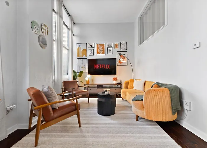 L'appartamento dispone di una cucina completamente attrezzata completa di un microonde, un bollitore elettrico e un frigo per la vostra comodità. Il ristorante McCormick & Schmick's Seafood & Steaks serve piatti della cucina americana e si trova abbastanza vicino a quest'alloggio. La fermata dell'autobus Delaware and New York Super è situata a una distanza di 550 metri dall'Appartamento Modern 2Br Downtown Indy Skywalk.